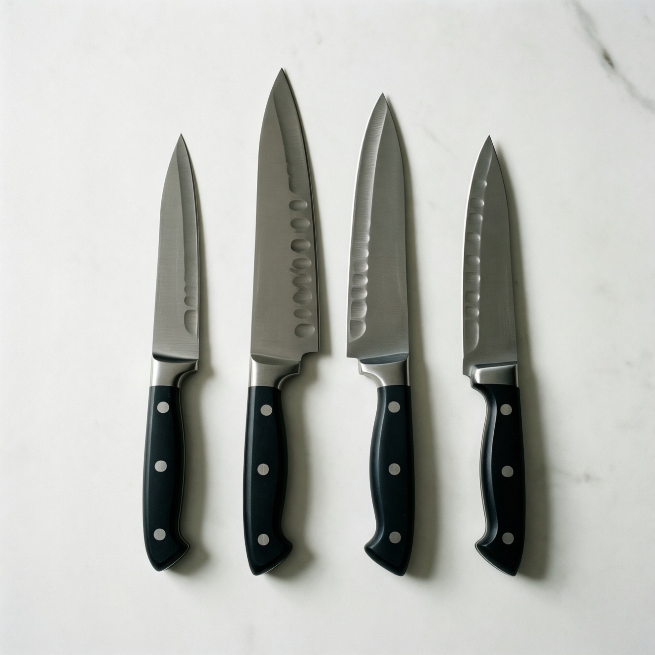 Для домашней кухни обычно достаточно 3-4 ножей: шеф-ножа, универсального, овощного и (по потребности) хлебного/филейного. Остальное - дубли и маркетинг. Качество реза и безопасность дают не самый большой набор, а правильная геометрия, удобный баланс, регулярная правка на мусате и заточка под стабильным углом.