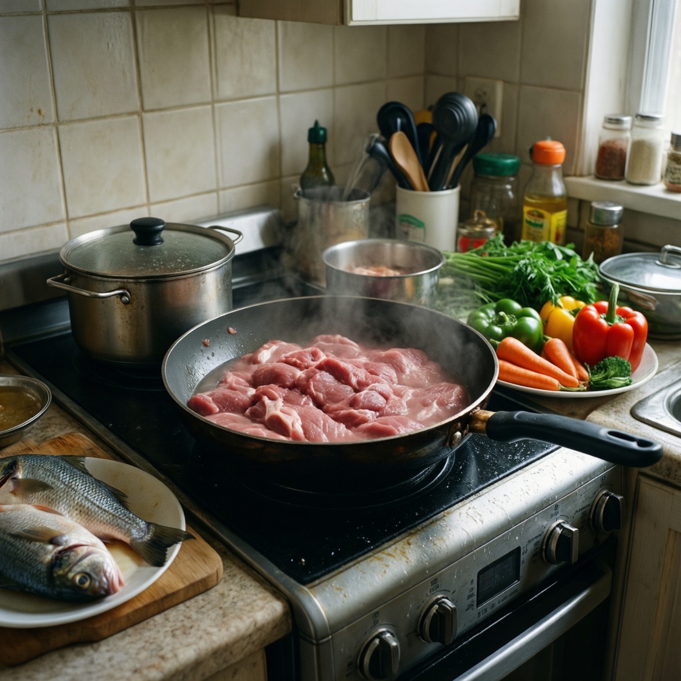 Большинство провалов при готовке мяса, рыбы и овощей сводится к трём вещам: неверная температура (слишком сильный/слабый огонь), неправильная подготовка (влага, соль, нарезка) и отсутствие быстрой диагностики по признакам. Ниже - типовые ошибки и безопасные способы исправить блюдо прямо в процессе, не ухудшая продукт.